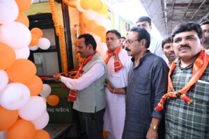 रायपुर. 18 सितम्बर 2025 : श्रीरामलला दर्शन योजना के तहत भारत गौरव ट्रेन बिलासपुर संभाग के 850 श्रद्धालुओं को लेकर अयोध्या धाम के लिए रवाना हुई। बिलासपुर रेलवे स्टेशन पर इस विशेष ट्रेन को जिला पंचायत के अध्यक्ष श्री राजेश सूर्यवंशी ने हरी झण्डी दिखाकर रवाना किया। इस अवसर पर मुंगेली जिला पंचायत के अध्यक्ष श्री श्रीकांत पांडे, बिलासपुर जिला पंचायत के सीईओ श्री संदीप अग्रवाल, पूर्व महापौर श्रीमती वाणी राव और नगर निगम के सभापति श्री विनोद सोनी सहित अनेक जनप्रतिनिधि, जिला प्रशासन, छत्तीसगढ़ टूरिज्म बोर्ड के अधिकारी-कर्मचारी तथा रेलवे के कर्मचारी उपस्थित थे।