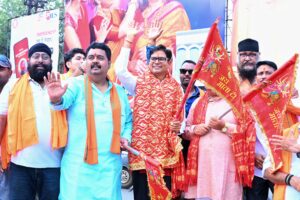 रायपुर, 26 सितम्बर 2025 : छत्तीसगढ़ के वित्त मंत्री श्री ओ.पी. चौधरी ने आज रायपुर स्थित ऐतिहासिक मां महाकाली मंदिर पहुंचकर विधि-विधान से पूजा-अर्चना की। उन्होंने प्रदेश की खुशहाली, सुख-शांति और समृद्धि की कामना करते हुए माता से आशीर्वाद लिया। मंदिर परिसर में श्रद्धालुओं और आमजन ने मंत्री श्री चौधरी का आत्मीय स्वागत किया। पूजा-अर्चना के पश्चात मंत्री श्री चौधरी ने नि:शुल्क डोंगरगढ़ दर्शन के लिए जा रहे श्रद्धालुओं की बस को हरी झंडी दिखाकर रवाना किया। बस के प्रस्थान के समय श्रद्धालुओं में विशेष उत्साह और उल्लास देखने को मिला। श्रद्धालुओं ने इस पहल के लिए वित्त मंत्री श्री चौधरी और समिति के प्रति आभार व्यक्त किया।