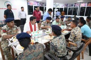 जहां उपमुख्यमंत्री श्री विजय शर्मा ने सभी के साथ भोजन किया और सभी ने अपने अनुभवों को उनके साथ साझा किया। इस अवसर पर डीआरजी के जवानों ने बताया कि कैसे दुर्गम पहाड़ियों और ऊंचाइयों पर उन्होंने नक्सलियों से लोहा लिया, कैसे स्थानीय लोग उन्हें उम्मीद की नजरों से देखते हैं, किस प्रकार नक्सल आतंक के हटने के साथ अब बस्तर फिर से विकास के रास्तों पर बढ़ रहा है। जवानों ने बताया कि अब कैम्पों की स्थापना के साथ दूरस्थ ग्रामों में ‘नियद नेल्लानार’ योजना और ‘इलवद ग्राम पंचायत’ जैसी योजनाओं से ग्रामीणों में विश्वास जागा है और अब सभी बस्तरवासी नक्सलवाद से मुक्त होकर विकास के नए रास्तों पर चलने को तत्पर हैं।