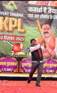 रायपुर, 26 नवम्बर 2025/ कवर्धा विधानसभा क्षेत्र में खेल प्रतिभाओं को प्रोत्साहित करने की दिशा में एक नई पहल करते हुए उपमुख्यमंत्री एवं कवर्धा विधायक श्री विजय शर्मा ने आज विधायक कार्यालय कवर्धा में “विजय शर्मा कवर्धा प्रीमियर लीग” के पोस्टर का विधिवत विमोचन किया। इस अवसर पर उन्होंने खिलाड़ियों का उत्साहवर्धन करते हुए स्वयं बल्ले से प्रतीकात्मक शॉट भी लगाया।