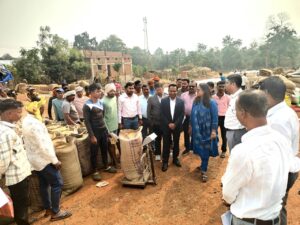 प्रभारी सचिव श्री पीएस एल्मा ने अपने प्रवास के दौरान ग्राम खरदी के धान उपार्जन केंद्र का निरीक्षण किया। उन्होंने मूलभूत व्यवस्थाओं का जायजा लिया। इसके पश्चात ग्राम एकटकन्हार धान उपार्जन केंद्र पहुंचे। उन्होंने नमी मापक यंत्र के माध्यम से धान की नमी, स्टेकिंग एवं तौल का अवलोकन किया। बारदाना की जानकारी पर समिति प्रबंधन ने बताया कि उपार्जन केंद्र में पर्याप्त बारदाना उपलब्ध है। समिति के पदाधिकारियों ने बताया कि किसानों के धान परिवहन वाहनों का गेट पास भी किया जा रहा है।