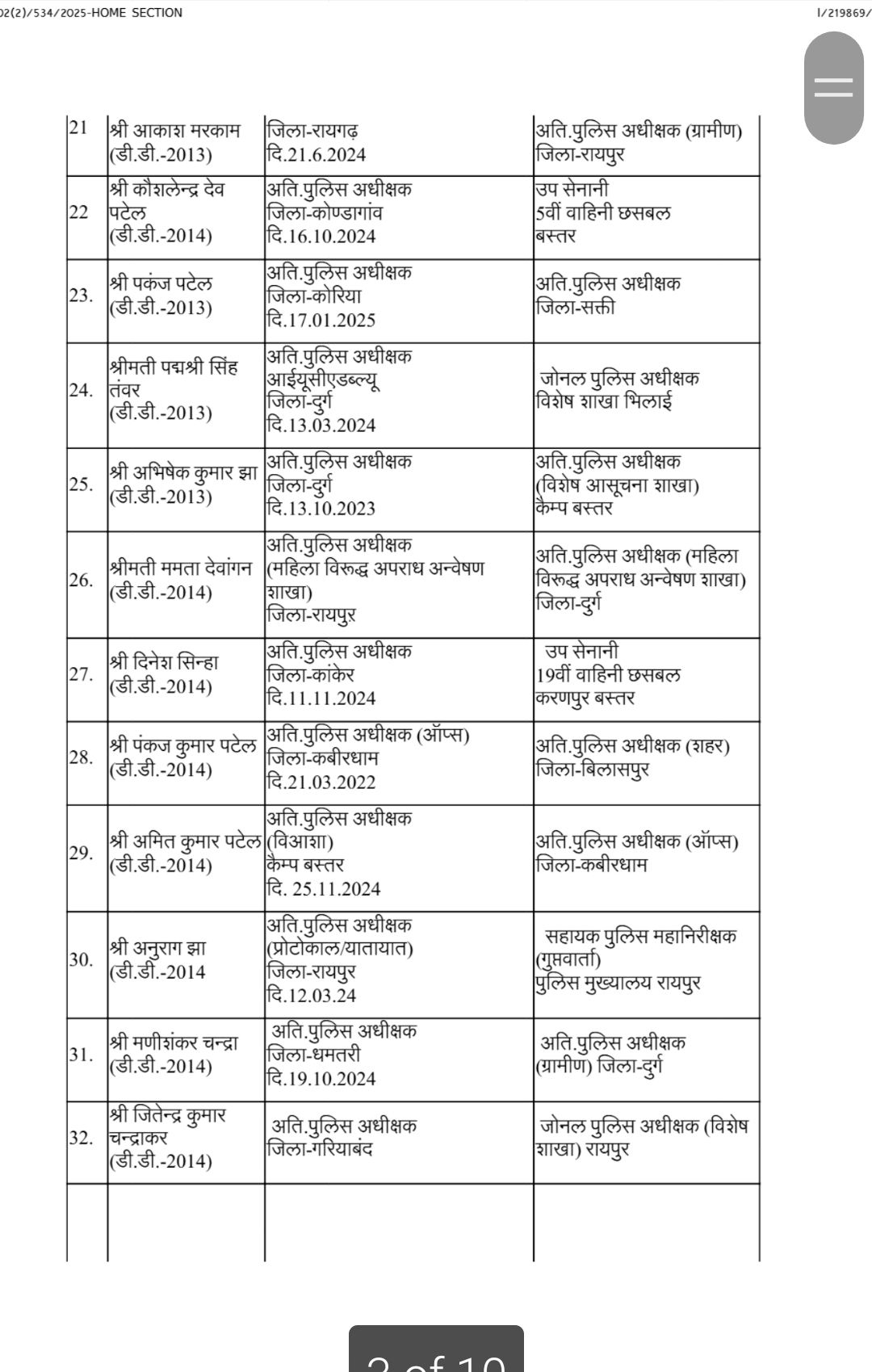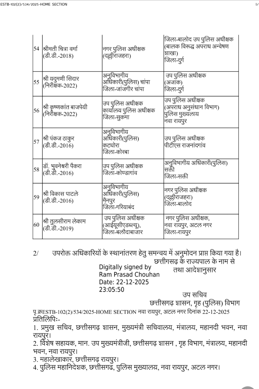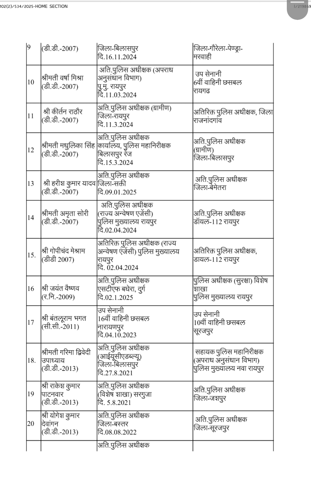 जारी आदेश के अनुसार, रायपुर ग्रामीण के अतिरिक्त पुलिस अधीक्षक कीर्तन राठौर को राजनांदगांव जिले का प्रभार सौंपा गया है। वहीं एएसपी राहुल देव शर्मा को रायपुर ग्रामीण का नया अतिरिक्त पुलिस अधीक्षक नियुक्त किया गया है।