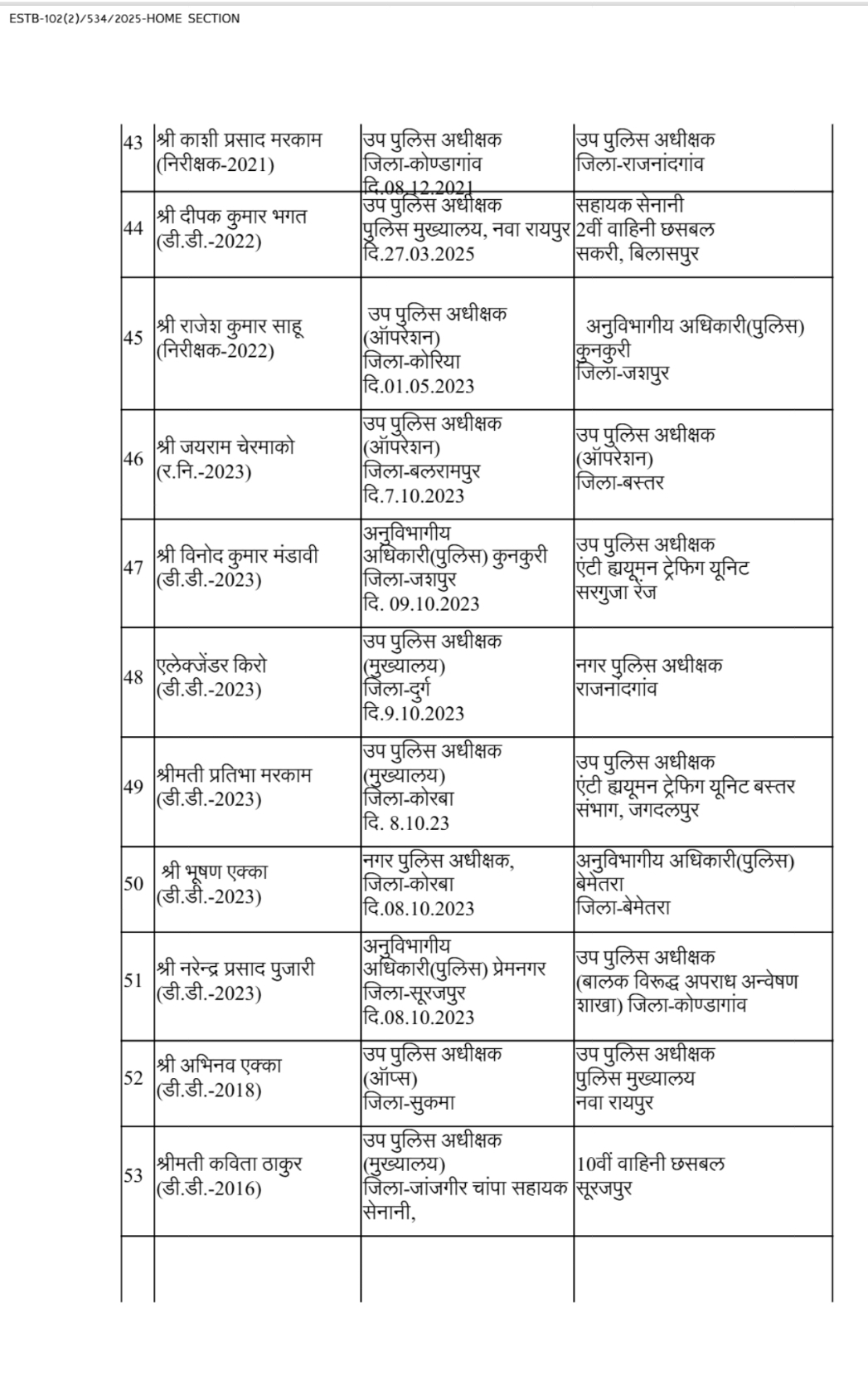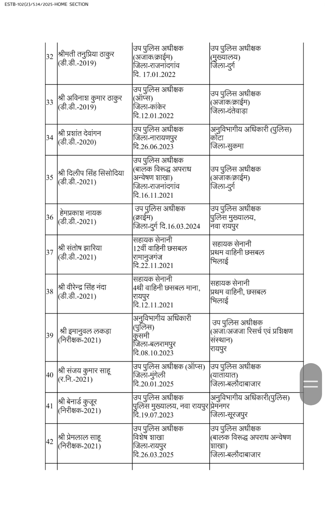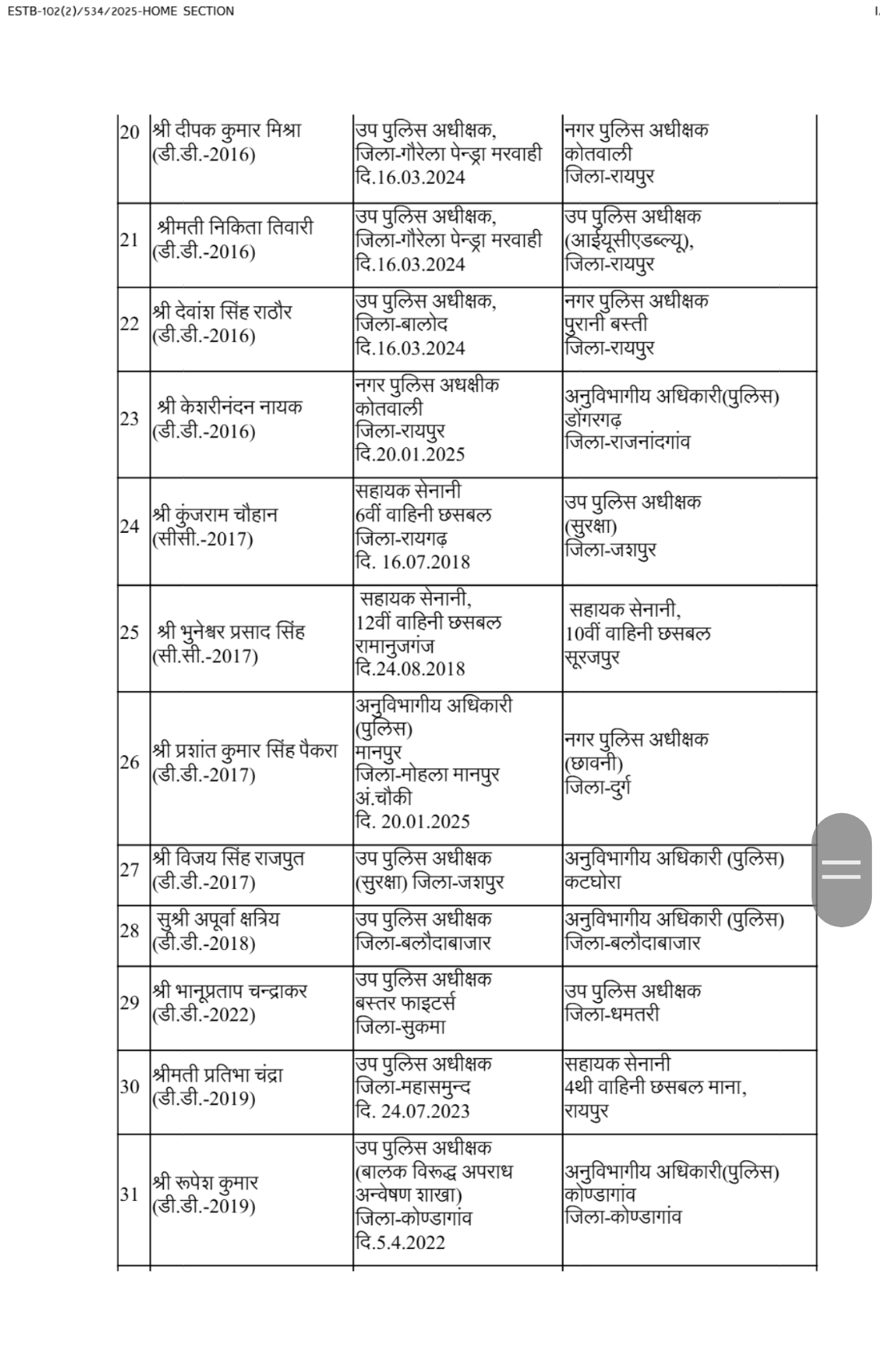 राज्य सरकार ने प्रशासनिक स्तर पर बड़ा कदम उठाते हुए राज्य प्रशासनिक सेवा के अधिकारियों के तबादले किए हैं। जारी की गई सूची में कुल 35 अतिरिक्त पुलिस अधीक्षक (ASP) और 60 उप पुलिस अधीक्षक (DSP) के नाम शामिल हैं। इस फैसले को पुलिस प्रशासन में कार्यक्षमता बढ़ाने और बेहतर कानून-व्यवस्था सुनिश्चित करने की दिशा में अहम माना जा रहा है।