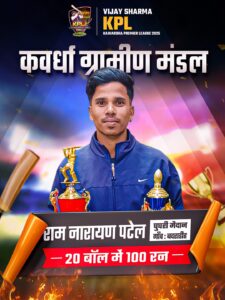 विजय शर्मा केपीएल में खिलाड़ियों ने अपनी शानदार प्रतिभा का प्रदर्शन किया है। कवर्धा ग्रामीण मंडल के बदराडीह निवासी राम नारायण पटेल ने मात्र 20 गेंदों में 100 रन बनाकर दर्शकों को रोमांचित कर दिया। वहीं भोरमदेव ग्रामीण मंडल के सेवाईकछार निवासी भीखम यादव ने केवल 30 गेंदों में 125 रन की विस्फोटक पारी खेलकर प्रतियोगिता को और भी खास बना दिया। केपीएल मैच के दौरान खिलाड़ियों द्वारा लगाए गए शानदार चौकों और छक्कों पर दर्शकों ने तालियों की गड़गड़ाहट से खिलाड़ियों का उत्साहवर्धन किया, जिससे पूरा स्टेडियम खेलमय वातावरण से गूंज उठा।