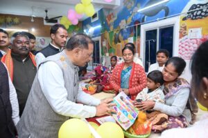 रायपुर, 29 दिसंबर 2025 : मुख्यमंत्री श्री विष्णुदेव साय ने आज सामुदायिक स्वास्थ्य केंद्र फरसाबहार में आयोजित कार्यक्रम के दौरान फरसाबहार के साथ-साथ कुनकुरी एवं मनोरा में स्थापित किए गए पोषण पुनर्वास केंद्रों का शुभारंभ किया। इन तीनों पुनर्वास केंद्रों को 10-10 बिस्तरों की सुविधा के साथ प्रारंभ किया गया है। इनके शुभारंभ के साथ ही जशपुर जिले में पोषण पुनर्वास केंद्रों की संख्या 6 हो गई है। इस दौरान मुख्यमंत्री ने पुनर्वास केंद्रों में भर्ती कुपोषित बच्चों की माताओं से बच्चों के स्वास्थ्य और उनके ईलाज के बारे में जानकारी ली। मुख्यमंत्री इस मौके पर बच्चों के लिए पोषण कीट के साथ खिलौने भी प्रदान किए।