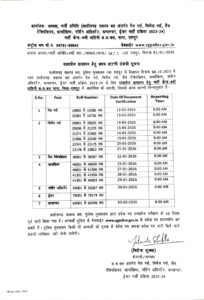 समय-सारणी के अनुसार मेल नर्स पद के लिए 12 एवं 13 जनवरी 2026 को, फीमेल नर्स पद के लिए 14 जनवरी से 21 जनवरी 2026 तक, लैब टेक्नीशियन के लिए 22 जनवरी 2026 को तथा फार्मासिस्ट पद के लिए 23, 27, 28 एवं 29 जनवरी 2026 को दस्तावेज सत्यापन किया जाएगा। वहीं नर्सिंग असिस्टेंट एवं ड्रेसर पद के अभ्यर्थियों का सत्यापन 30 जनवरी 2026 को एवं कम्पाउंडर पद के अभ्यर्थियों का 2 फरवरी 2026 को किया जाएगा।