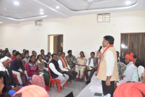 गृह मंत्री श्री शर्मा ने जिले के नियद नेल्ला नार के ग्राम पंचायतो के विकास कार्य हेतु समाज प्रमुखों जनप्रतिनिधियों से की चर्चा