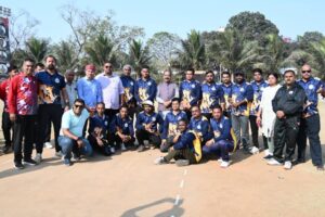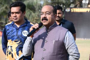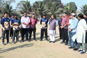 रायपुर. 21 फरवरी 2026 : उप मुख्यमंत्री तथा खेल एवं युवा कल्याण मंत्री श्री अरुण साव ने शुक्रवार को रायपुर प्रेस क्लब द्वारा सुभाष स्टेडियम में आयोजित स्वर्गीय कुलदीप निगम स्मृति इंटर-प्रेस क्रिकेट टूर्नामेंट के फाइनल मुकाबले में पहुंचकर पत्रकार खिलाड़ियों से आत्मीय मुलाकात की और उनका उत्साहवर्धन किया। उन्होंने खेल मड़ई के सफल आयोजन के लिए रायपुर प्रेस क्लब और पत्रकारों को बधाई दी।