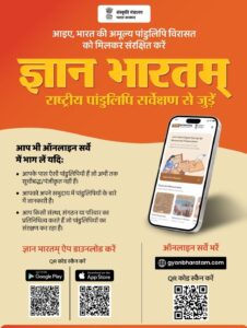 संस्कृति विभाग, जो इस अभियान का नोडल विभाग है, ज्ञानभारतम के क्षेत्रीय संयोजकों के सहयोग से जिला स्तर पर प्रशिक्षकों को विशेष प्रशिक्षण प्रदान कर रहा है, ताकि सर्वेक्षण कार्य गुणवत्ता और सटीकता के साथ पूरा किया जा सके।