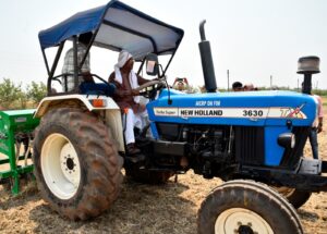 कृषि मंत्री श्री नेताम ने मिट्टी एवं बीजों की पूजा की और ट्रैक्टर चलाकर बीजों की बुआई की